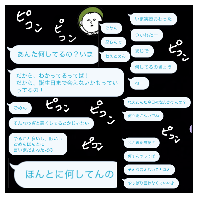 本当に本当に既視感しかなくて思わずコメントしたくなりました。。 ねー、何してるの?無視?ってLINEも全く同じ。向こうはいたずら半分でスタンプを100個送ってきてたこともありました。